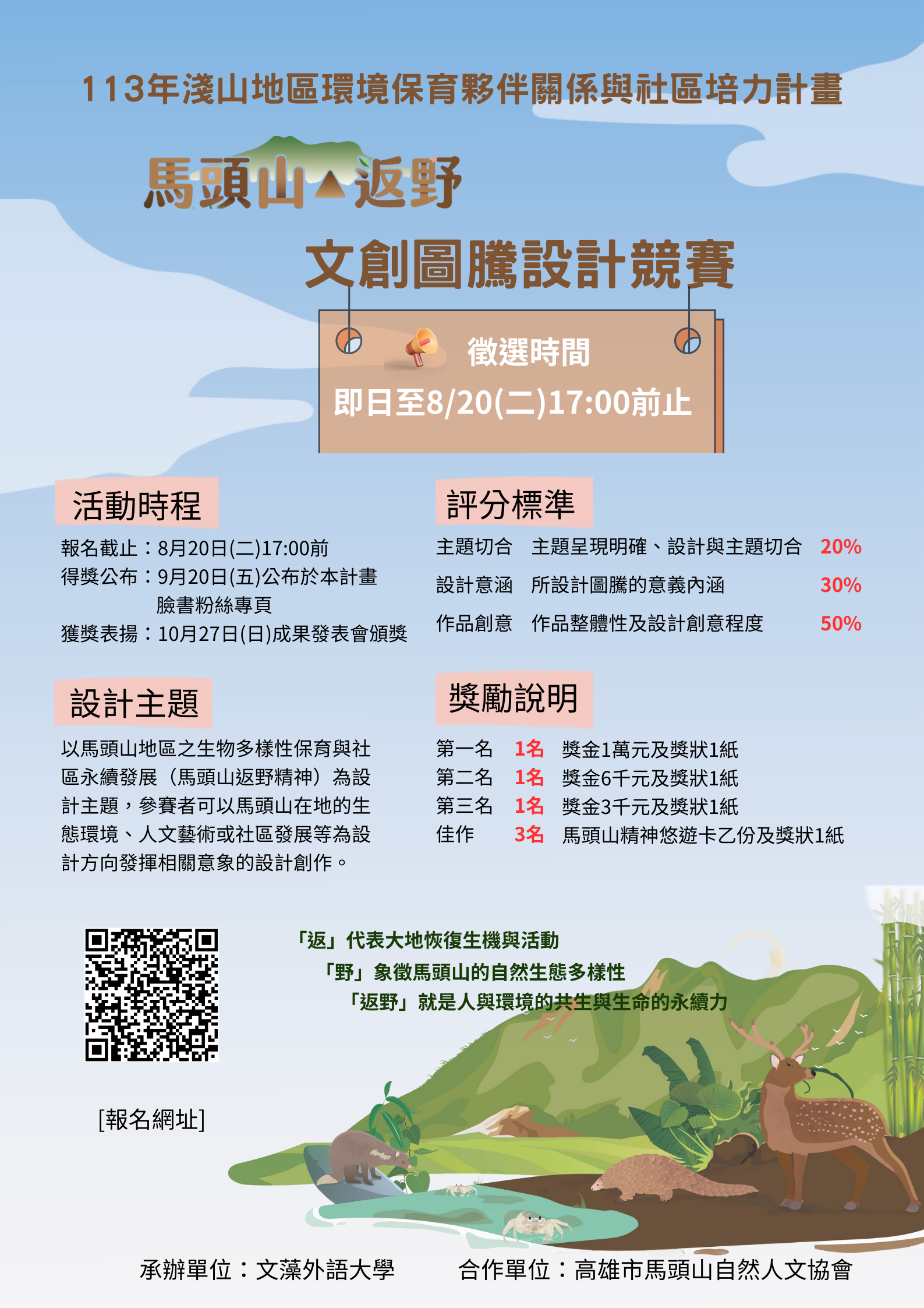 「113年度淺山地區環境保育夥伴關係與社區培力計畫」馬頭山返野文創圖騰設計競賽