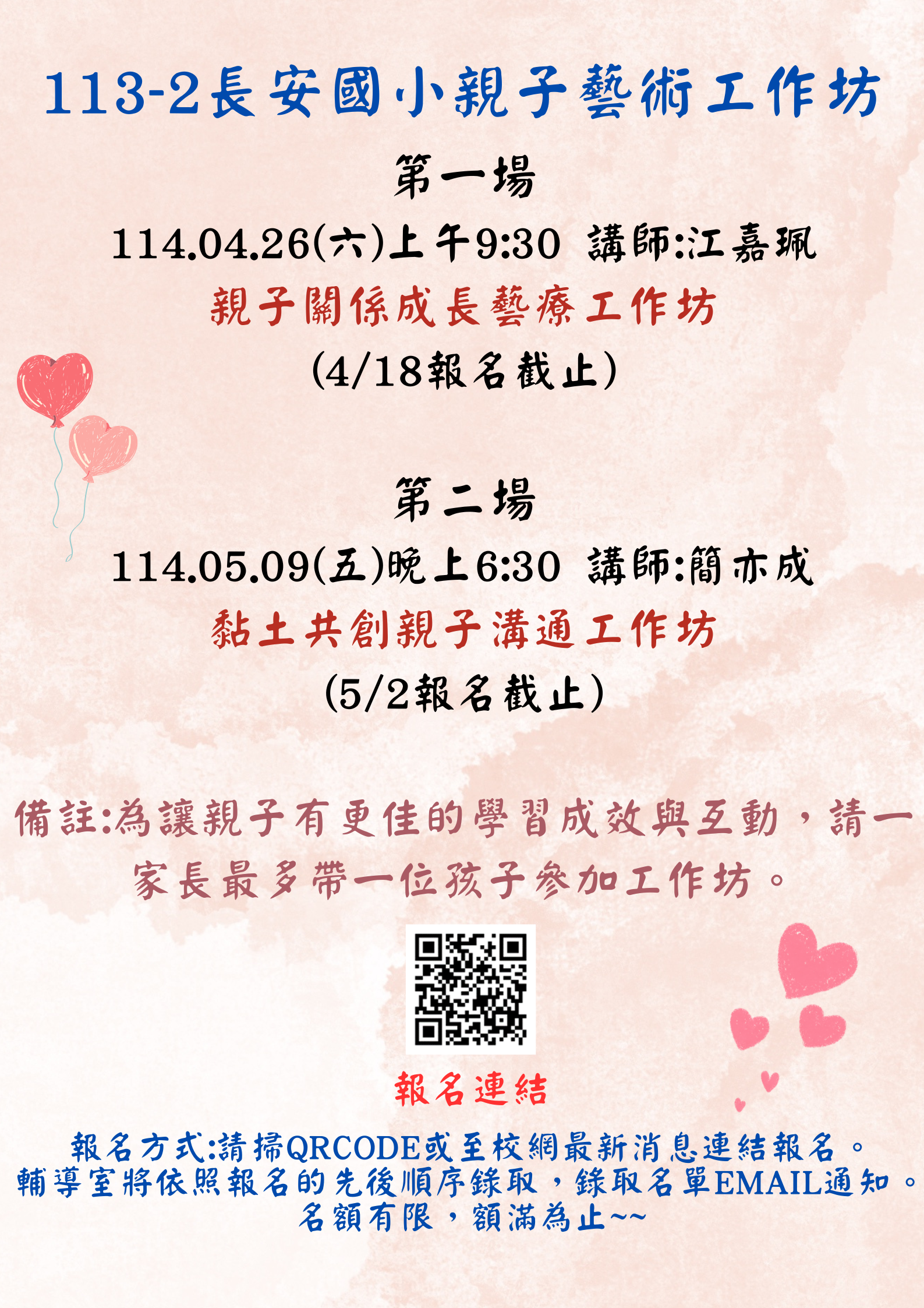 報名方式:請掃附件QRCODE或至校網家長便利屋連結報名。