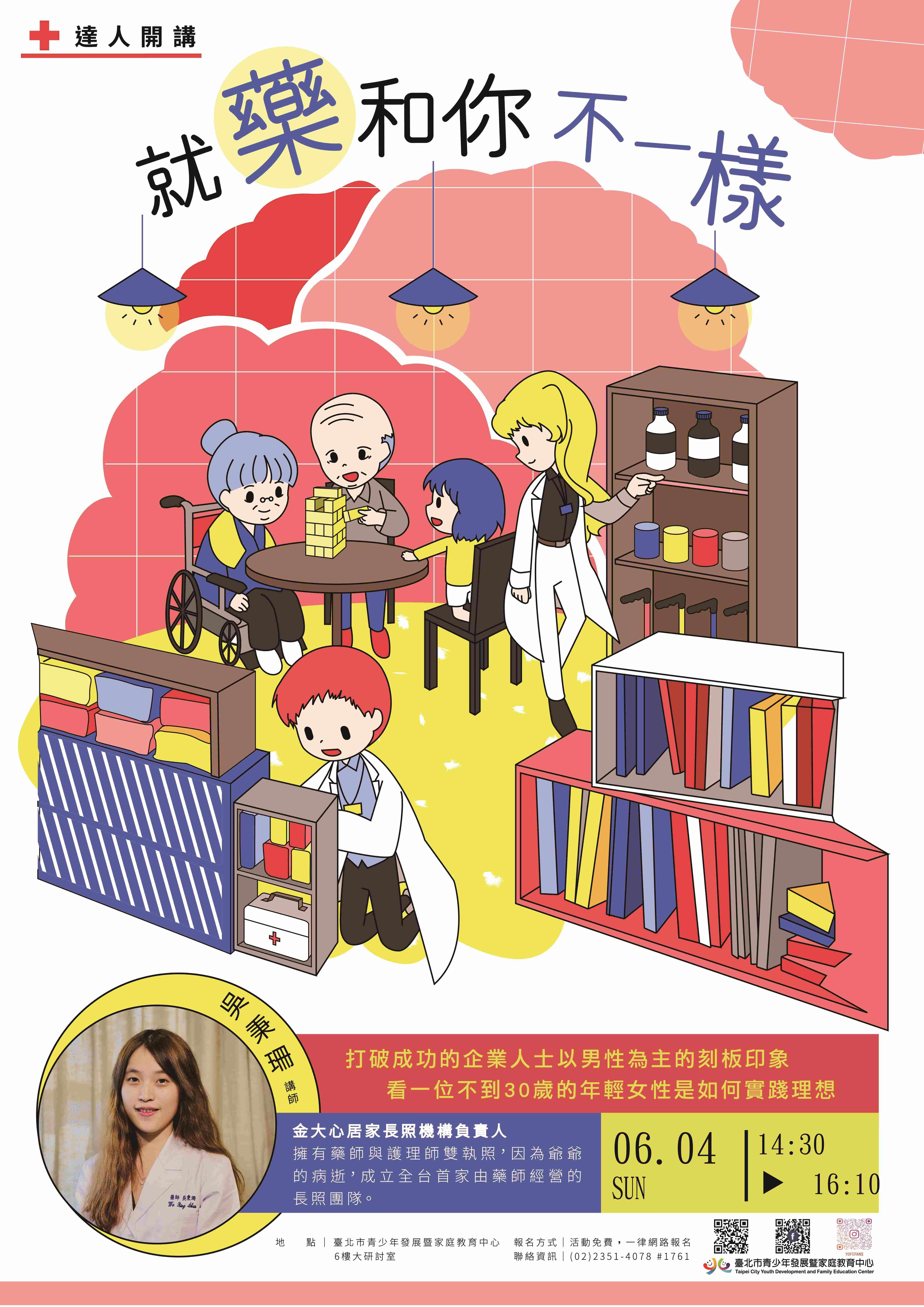 一、經由講師職涯經驗分享,讓年輕學子認識各行各業,藉以了解自身興趣及性向,進而找到未來的道路與建立自我價值;金大心居家長照機構負責人吳秉珊老師以個人經驗出發,與青年學子分享她成立全臺首家由藥師經營長照團隊的心路歷程,以及過程中的體驗。
