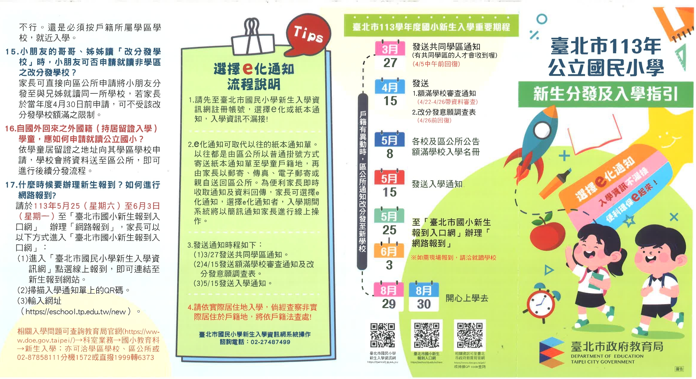 歡迎註冊新生入學資訊網( https://tpenroll.tp.edu.tw/ ),可快速獲得小一新生分發入學最新資訊。