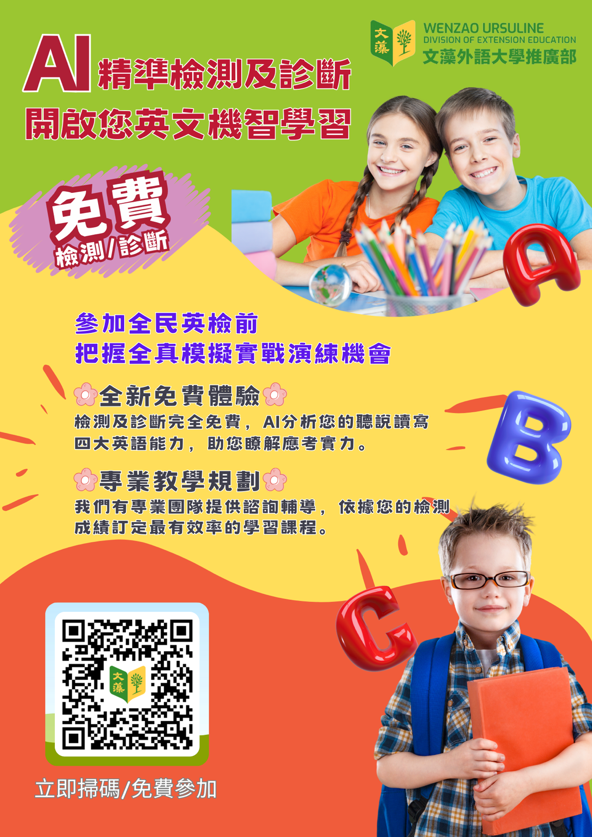 (二)檢測依據程度提供學生不同的的聽力、閱讀、口說及寫作測驗。