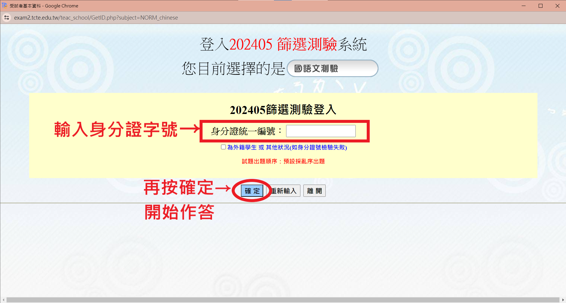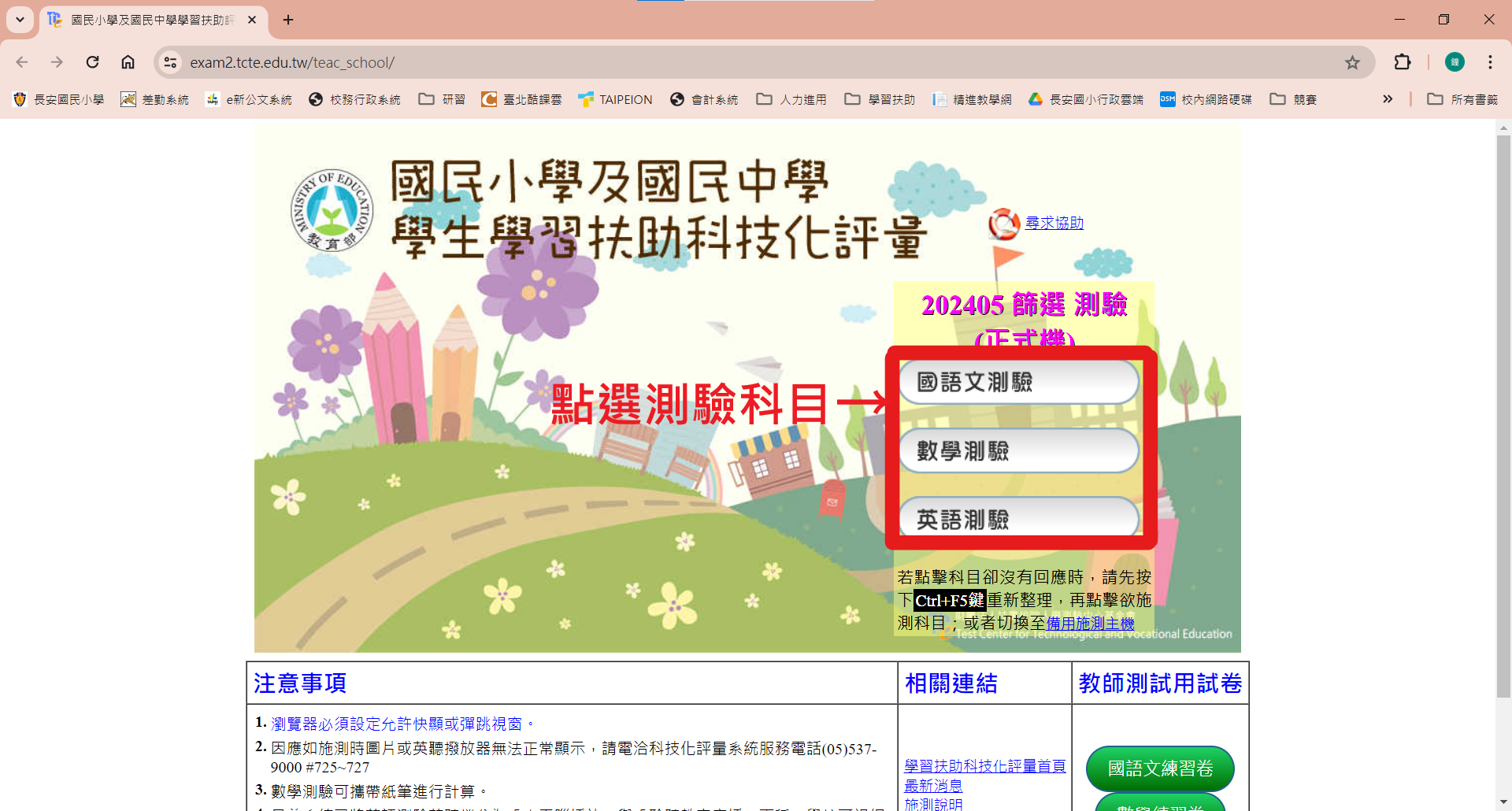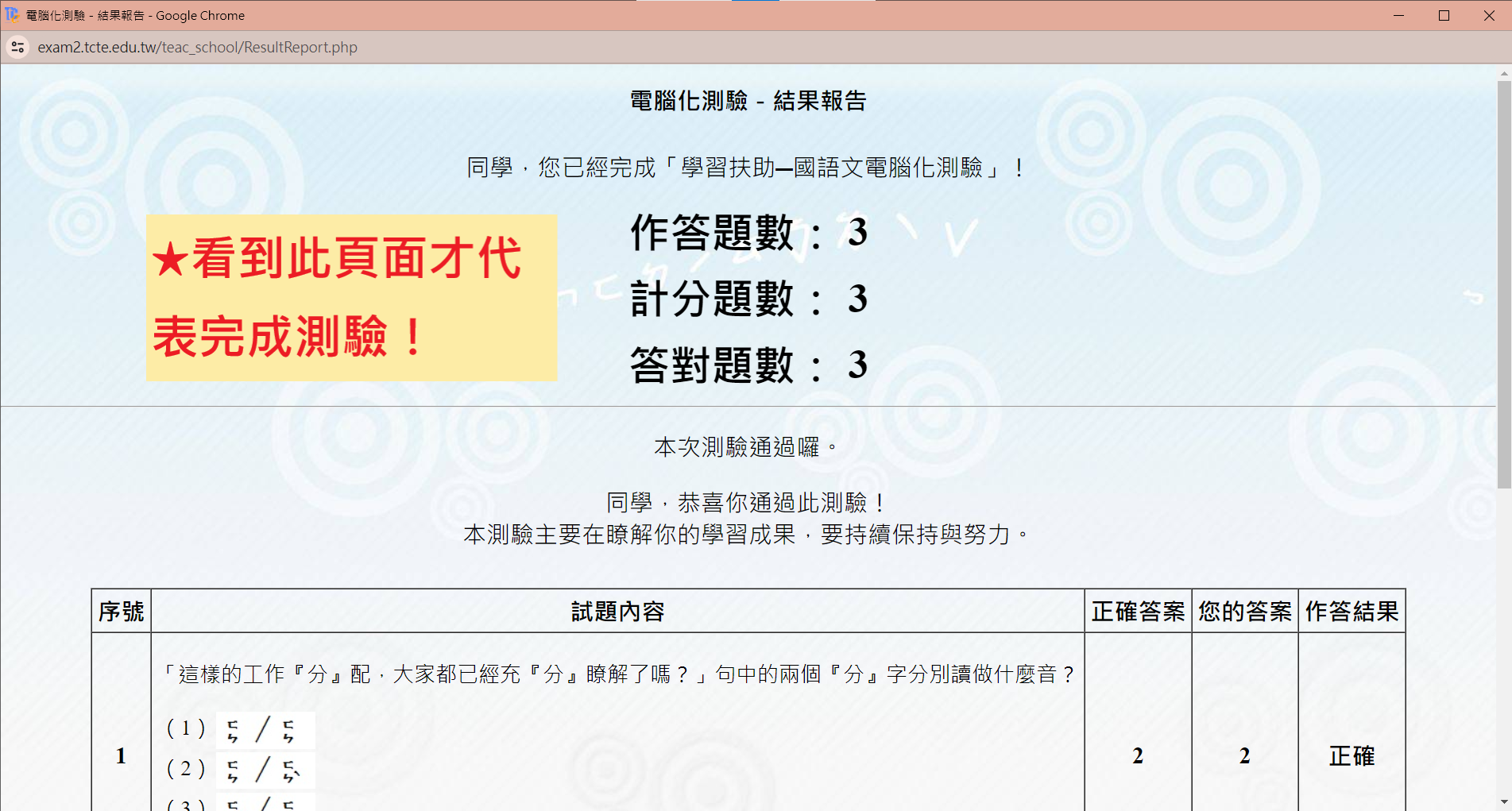 測驗網址:https://exam2.tcte.edu.tw/teac_school/ 請務必認真用心作答,如未通過測驗,往後需持續參加考試,並通過至少兩次測驗。