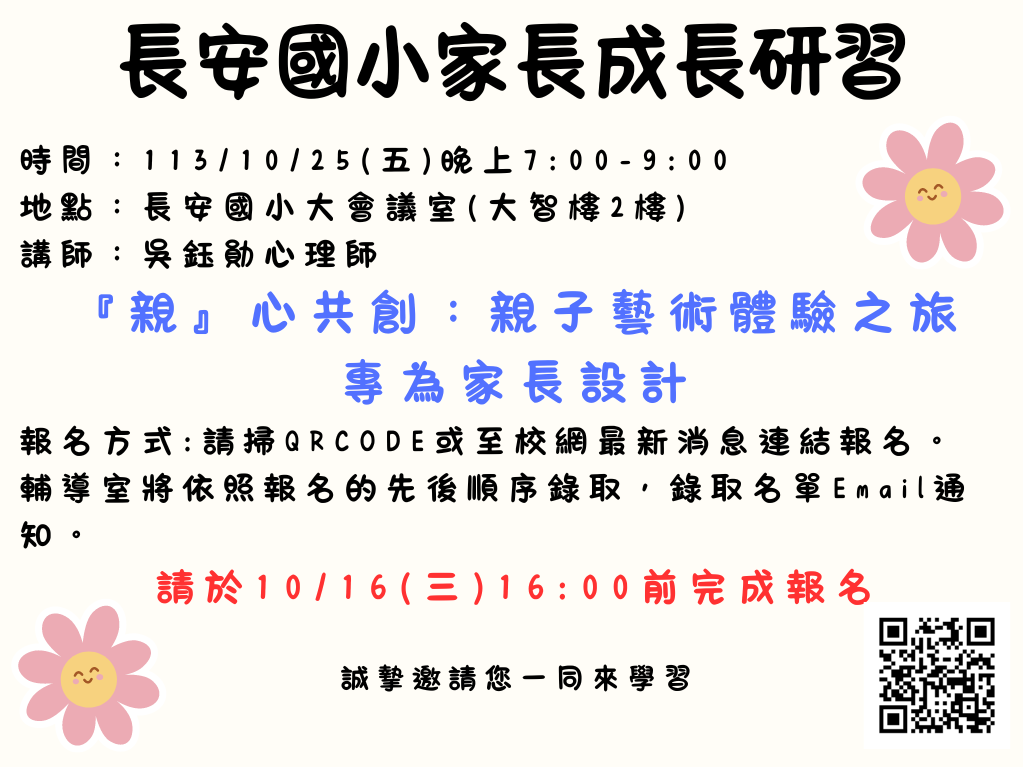 內容:『親』心共創:親子藝術體驗之旅基於薩提爾理論,專為家長設計,透過創意藝術活動探索親子關係的深層動態。藉由輕黏土創作,家長將捏塑孩子與自己的形象,象徵家庭中的情感與互動,進而幫助家長覺察與理解在家庭中各自的角色與情緒表達。活動包含以薩提爾理論為基礎的暖身討論,引導家長分享對親子關係的看法與期待,並運用正向溝通技巧探討親子關係中的挑戰與議題,促進情感連結與家庭內部的和諧發展。