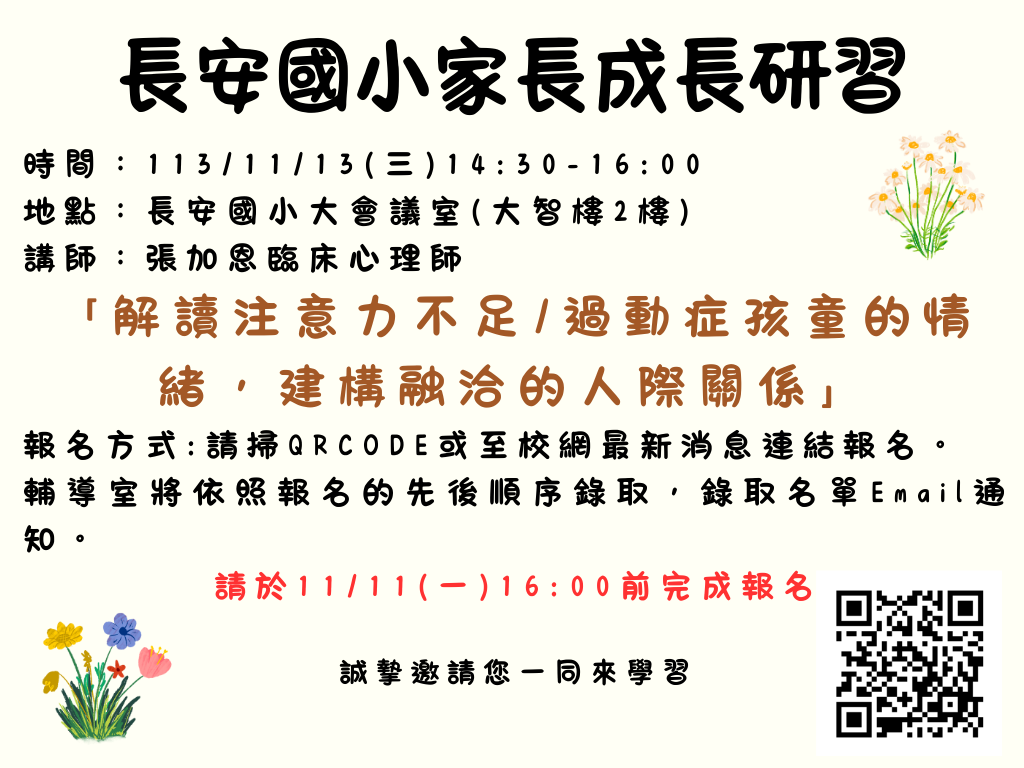 主題:「解讀注意力不足/過動症孩童的情緒,建構融洽的人際關係」